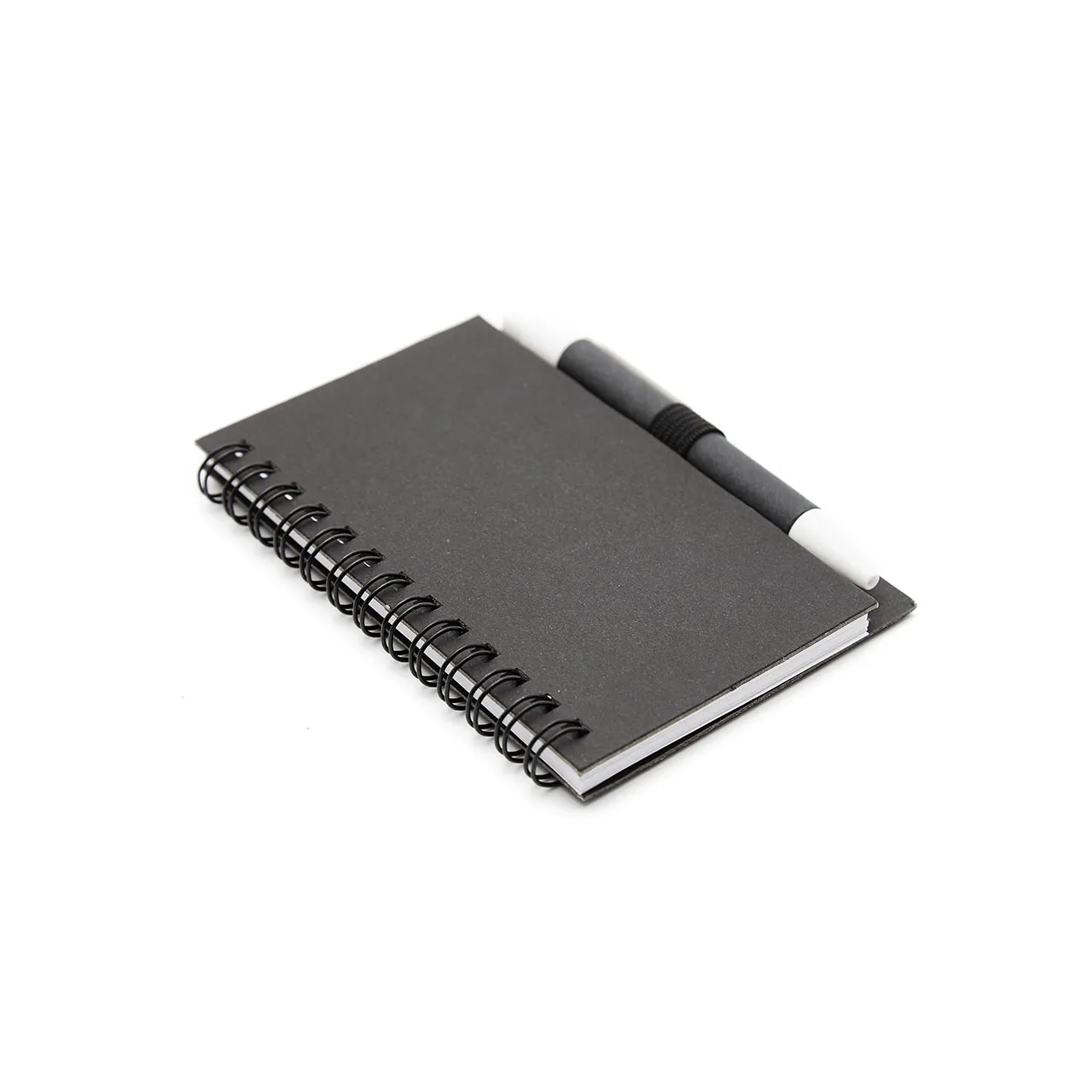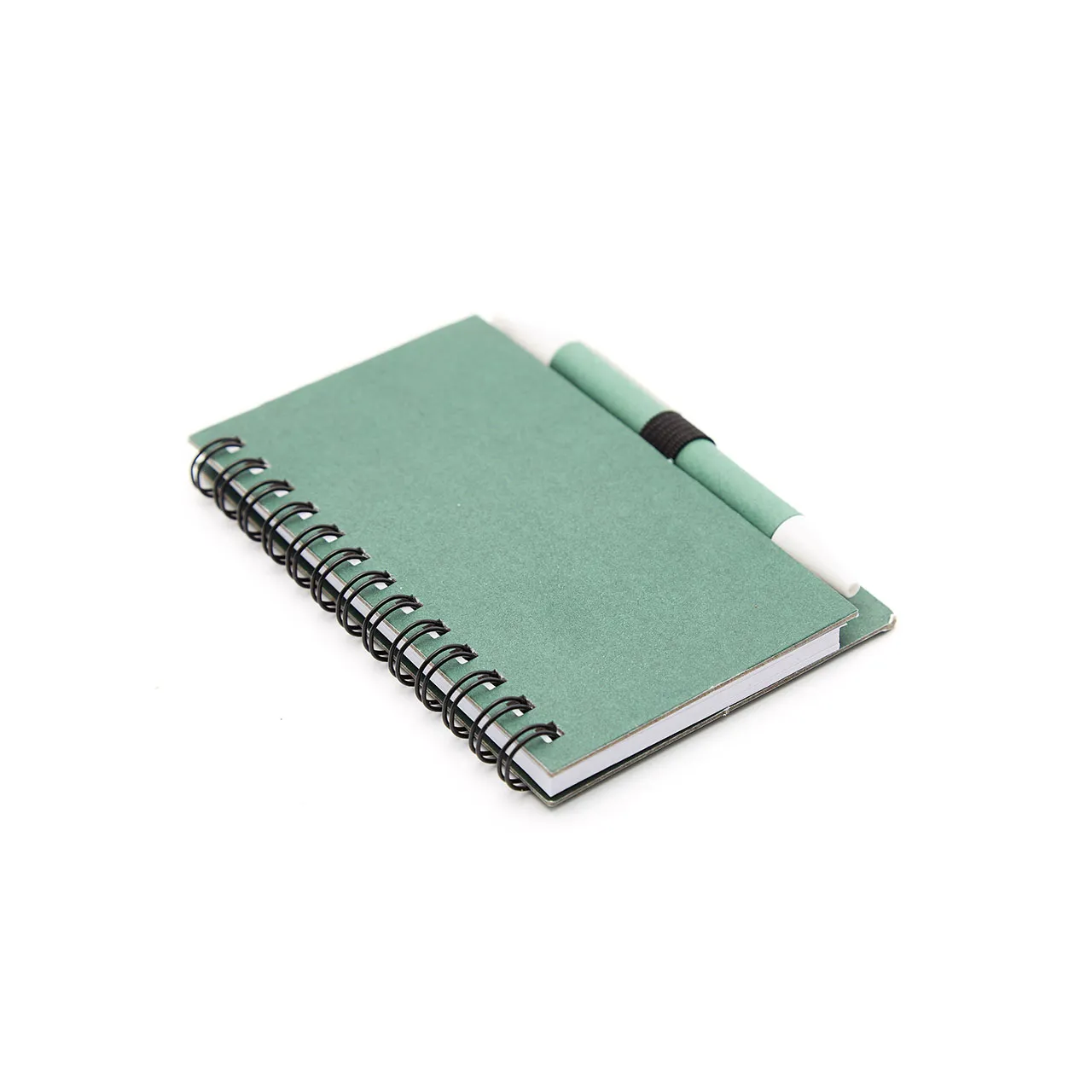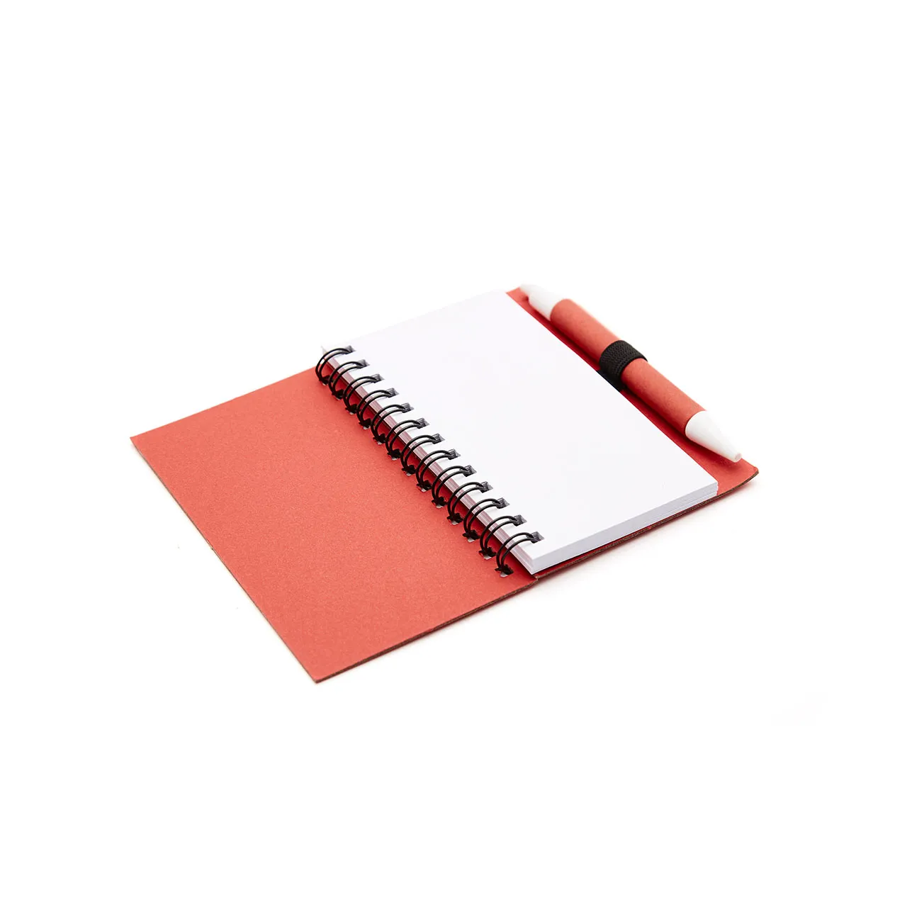 Cuaderno anillado colors tamaño A6 con 50 hojas lisas de 80 grm. Realizado con tapa dura elaborada en cartón reciclado. Incluye bolígrafo con pulsador. Medidas: 8 x 12 cm. ReUseMe.